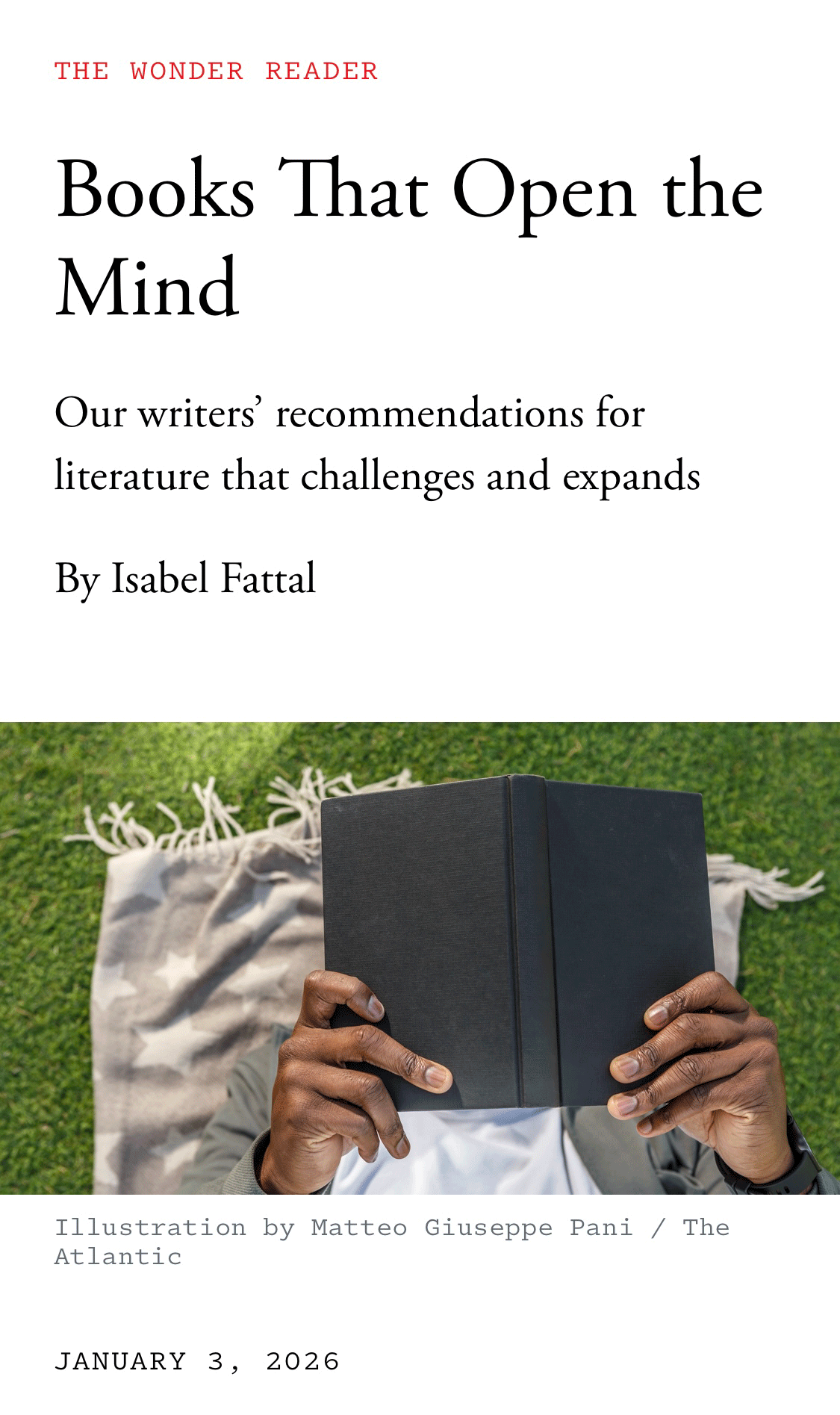 {The Washington Post — with its column on the “Finding Awe” programming at the National Gallery — and the Atlantic — introducing a new feature called The Wonder Reader — clearly agree.}